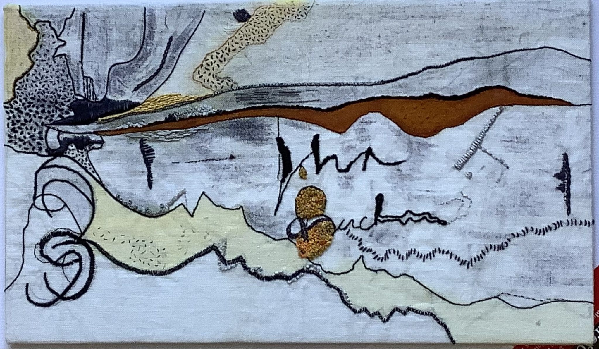 Upstairs in the larger gallery, our members have responded to the exhibition celebrating the 25th anniversary of EDGE textile artists Scotland. Our more longstanding members (of ten to twenty-five years) have submitted their favourite older work along with their newer work to show the passage of time. Whilst our newer members have embraced the Open theme by submitting their best current work to express themselves.