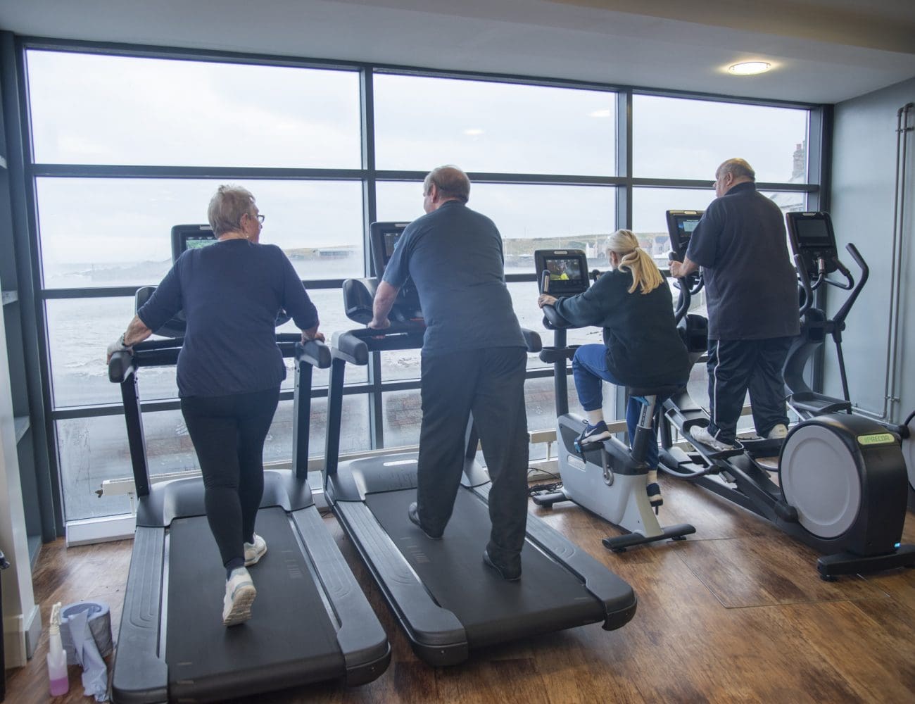 Cardio: 2 x treadmills, 2 x cross trainers, rower, watt bike, skill mill (curved treadmill), upright bike, recumbent bike, upper arm rehab bike (fluid).